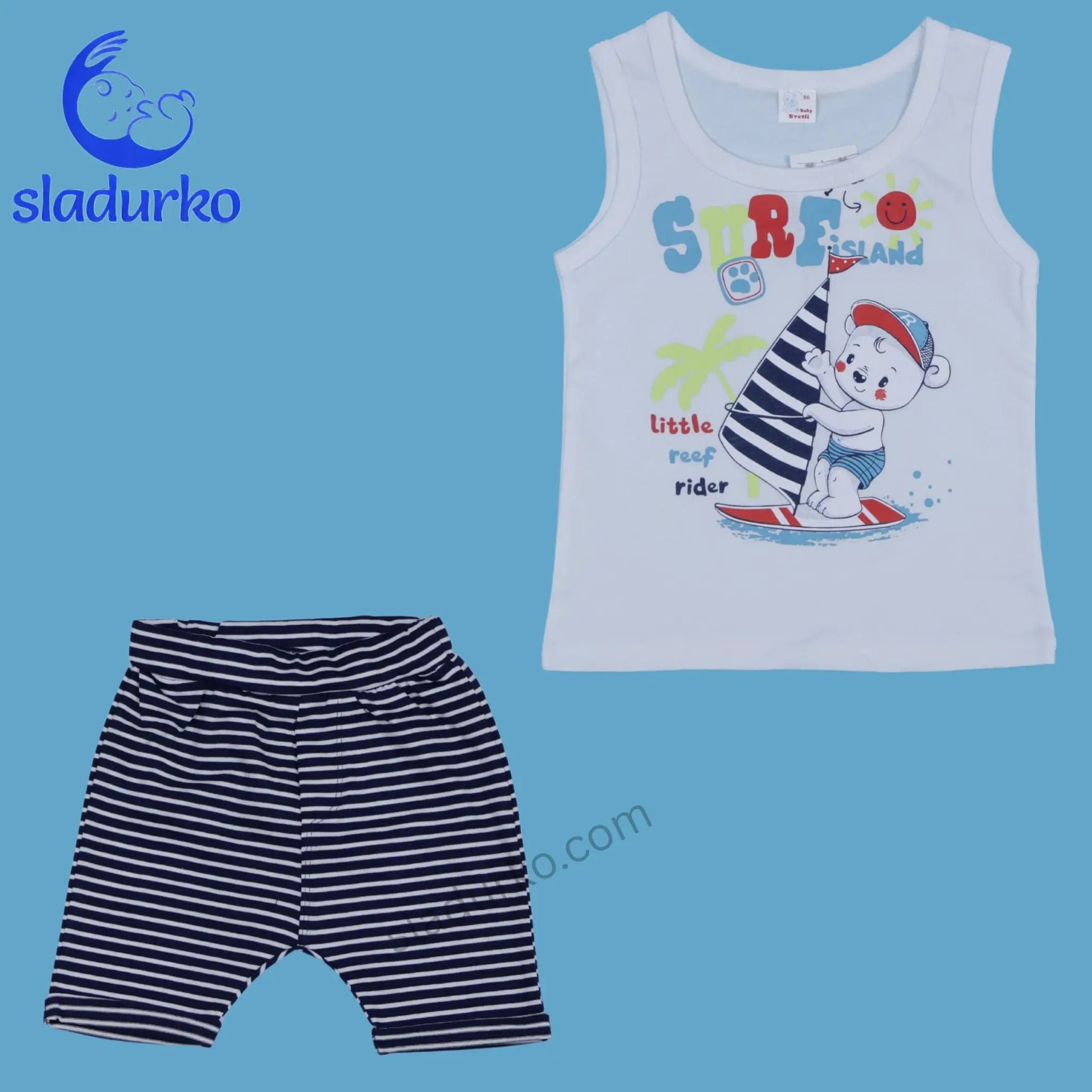 Подгответе вашето малко момченце за безкрайни летни приключения с този очарователен и удобен комплект от Sládurko! Идеален за топлите дни, той съчетава комфорт, качество и стилен дизайн, вдъхновен от морето.