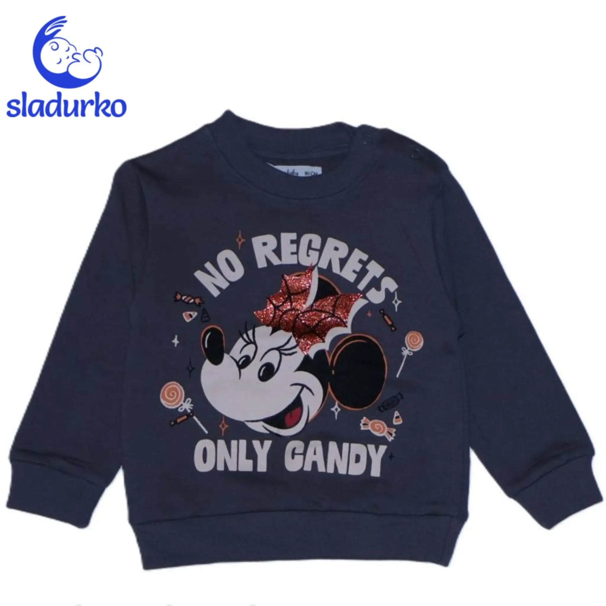Бебешка блуза с дълъг ръкав за момиче в мек и универсален сив цвят, изработена от нежна и комфортна материя, подходяща за чувствителната бебешка кожа. Декорирана е с весел и цветен принт, който добавя настроение и закачливост на визията – идеална за ежедневието или специални моменти. Моделът е лек и удобен, с лесно обличане и събличане, благодарение на практичното закопчаване на рамото.