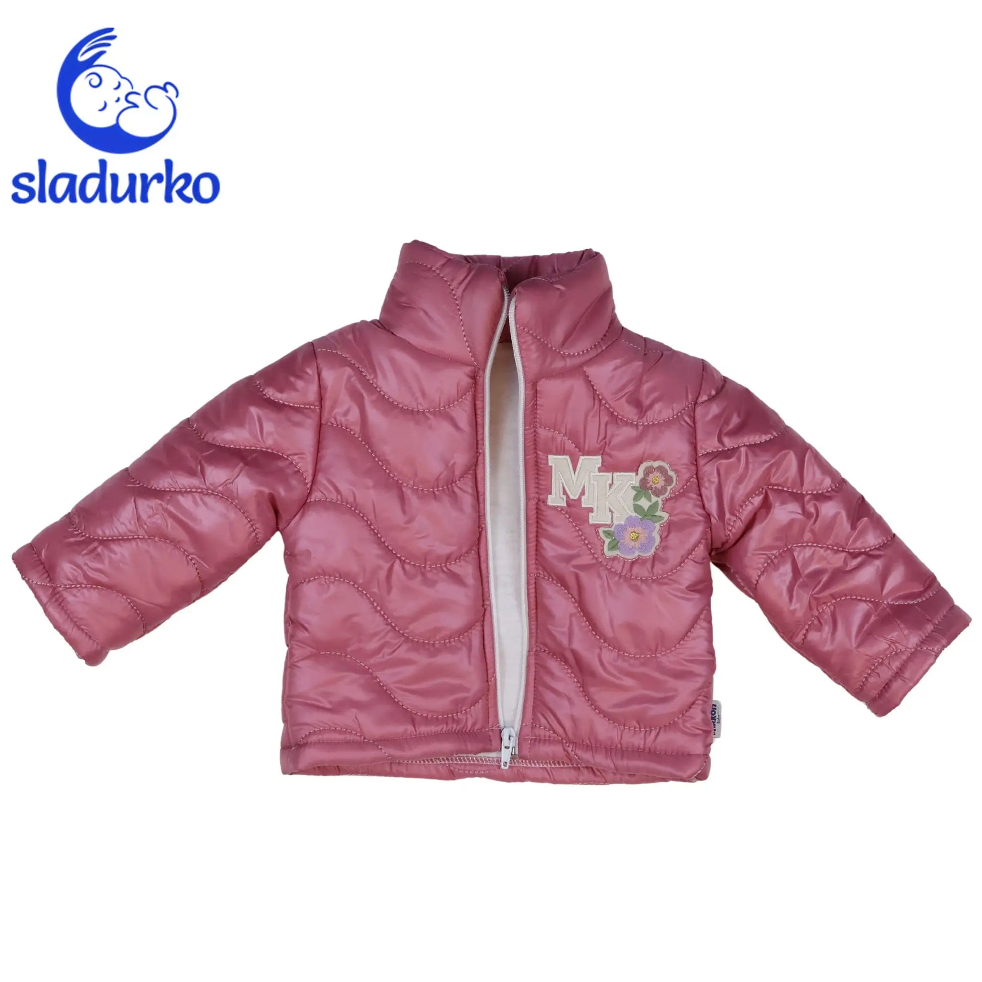 - Яке: Промазано яке в розов цвят с лека вата и цип. Декорирано с апликация на буква "М" и цветя на гърдите.