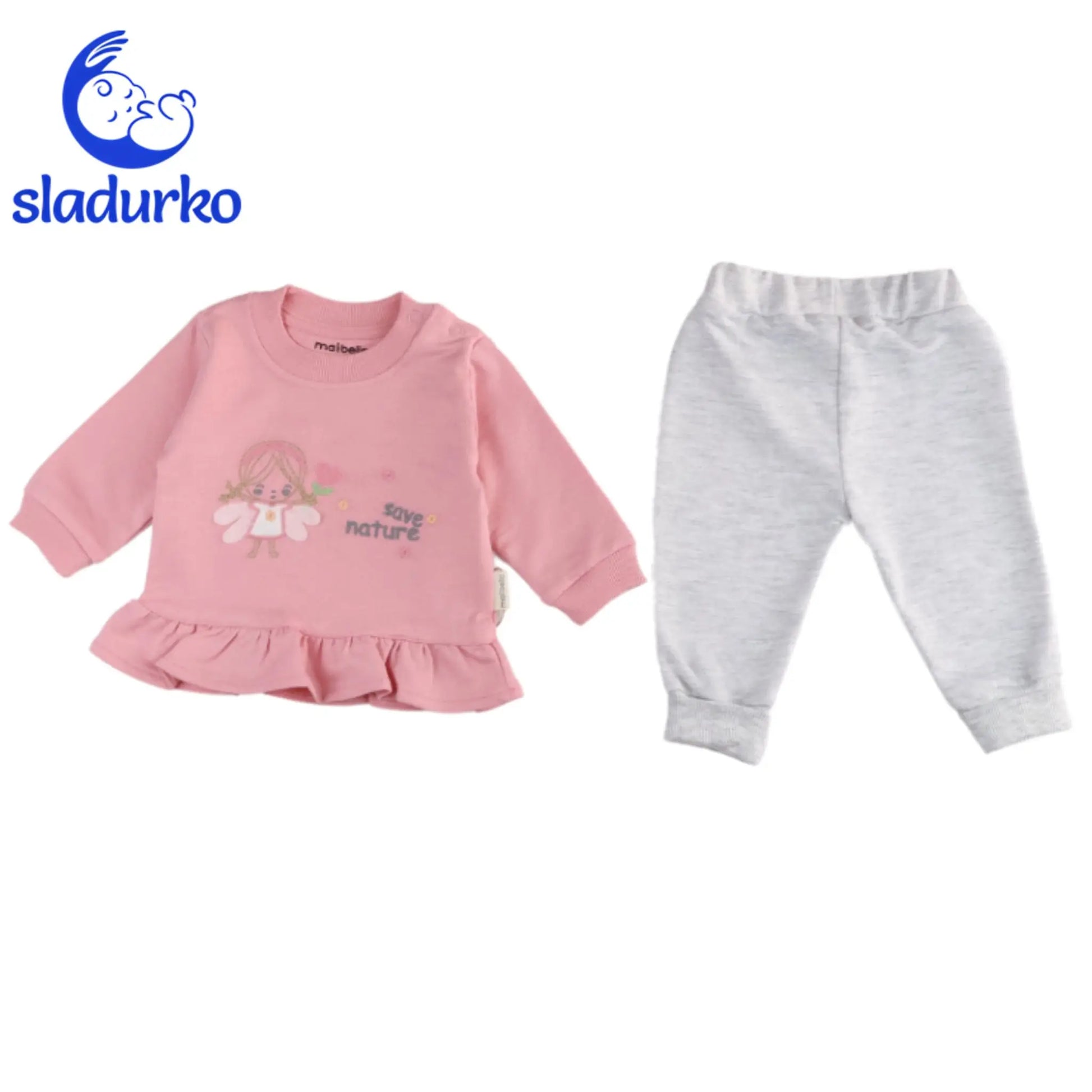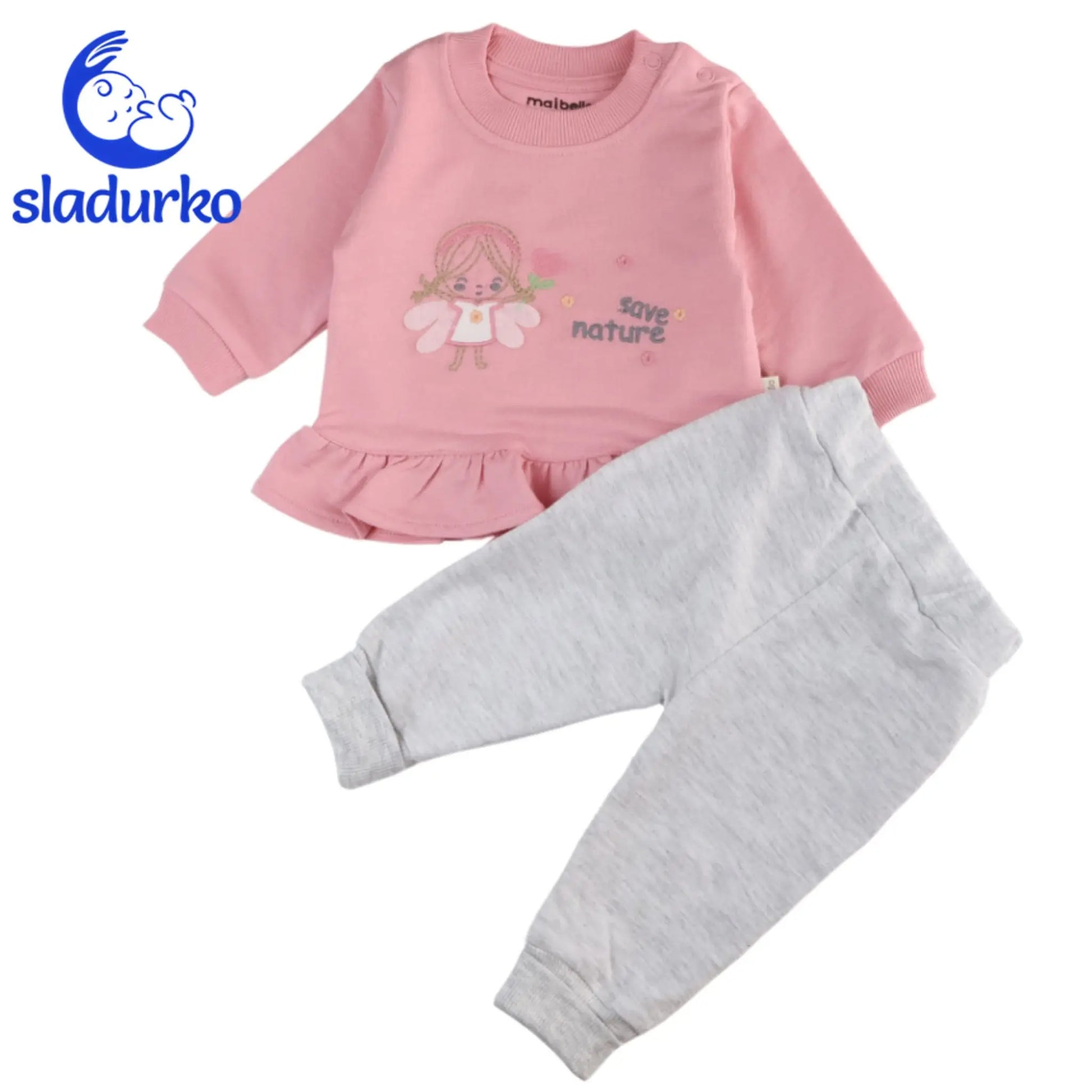 Комплектът включва блузка с дълъг ръкав и панталонки. Двуцветен комплект за момиче от две части тъмно розов.Този очарователен комплект от две части е идеалният избор за всяко момиченце, което обича да се облича стилно и комфортно. Мека и приятна на допир блузка, изработена от висококачествена материя, която гарантира комфорт през целия ден. На предната част на блузката има сладка апликация , която придава игрив и забавен вид на облеклото. Удобни панталонки, които осигуряват свобода на движение и са перфектно допълнение към блузката. Те са с еластична талия за лесно обличане и събличане, като също така допълват тематиката. Този комплект съчетава функционалност и сладък дизайн, като предоставя комфорт и стил за вашето момиченце. Апликацията добавя уникален и забавен акцент, който ще зарадва всяко дете. Комплектът е подходящ както за ежедневни разходки и игри. Произход Турция. Цветовете могат да се различават в заввисимост от настройките на вашето устройство.