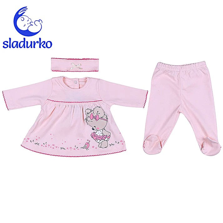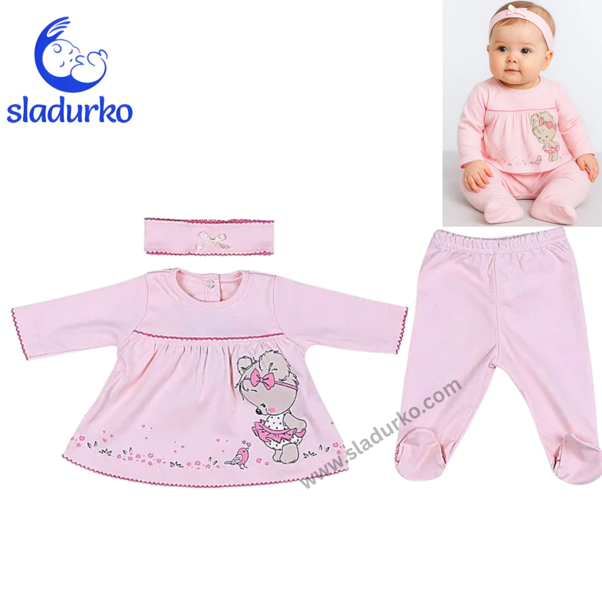 Представяме ви очарователен комплект за вашето малко момиченце - розова рокля, лента за глава.