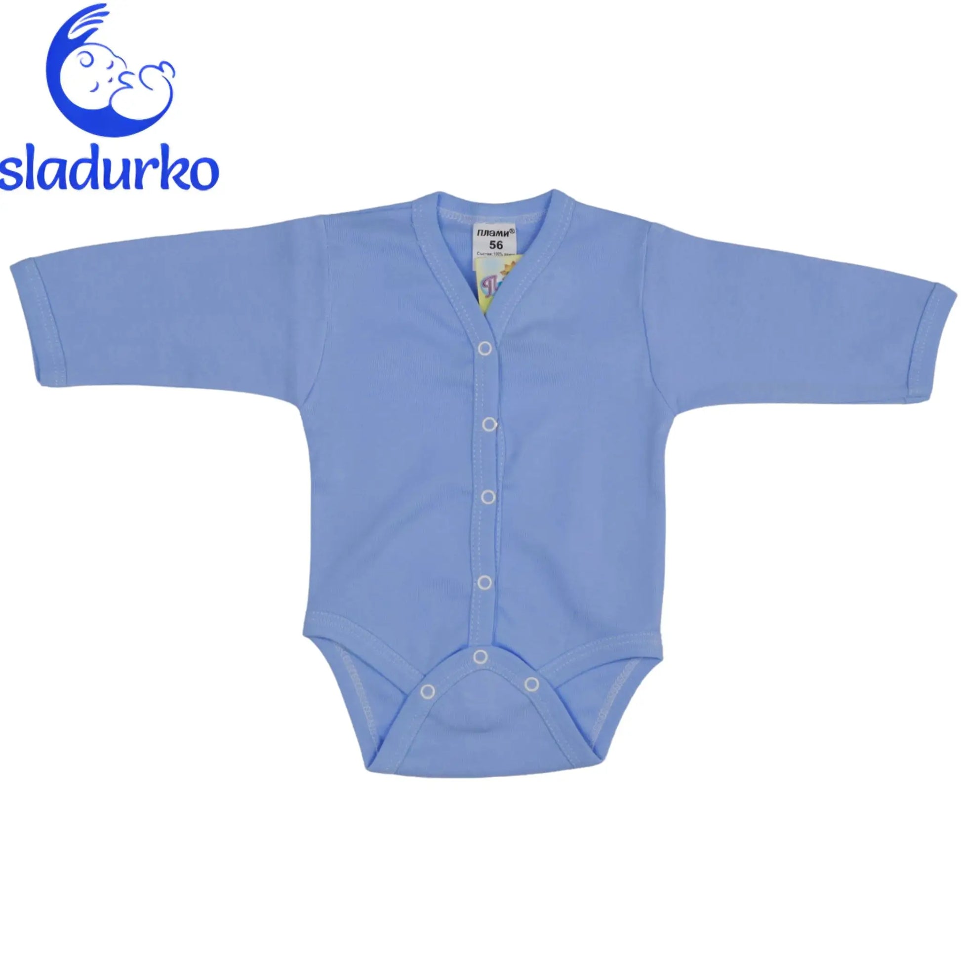 Синьо боди с дълъг ръкав и закопчаване отпред .Мека материя 100% памук.Подходящо за новородени бебета.Лесно за събличане и обличане. Инструкции за грижа: Пране в пералня на 30°C .Гладене на ниска температура .Да не се използва белина.