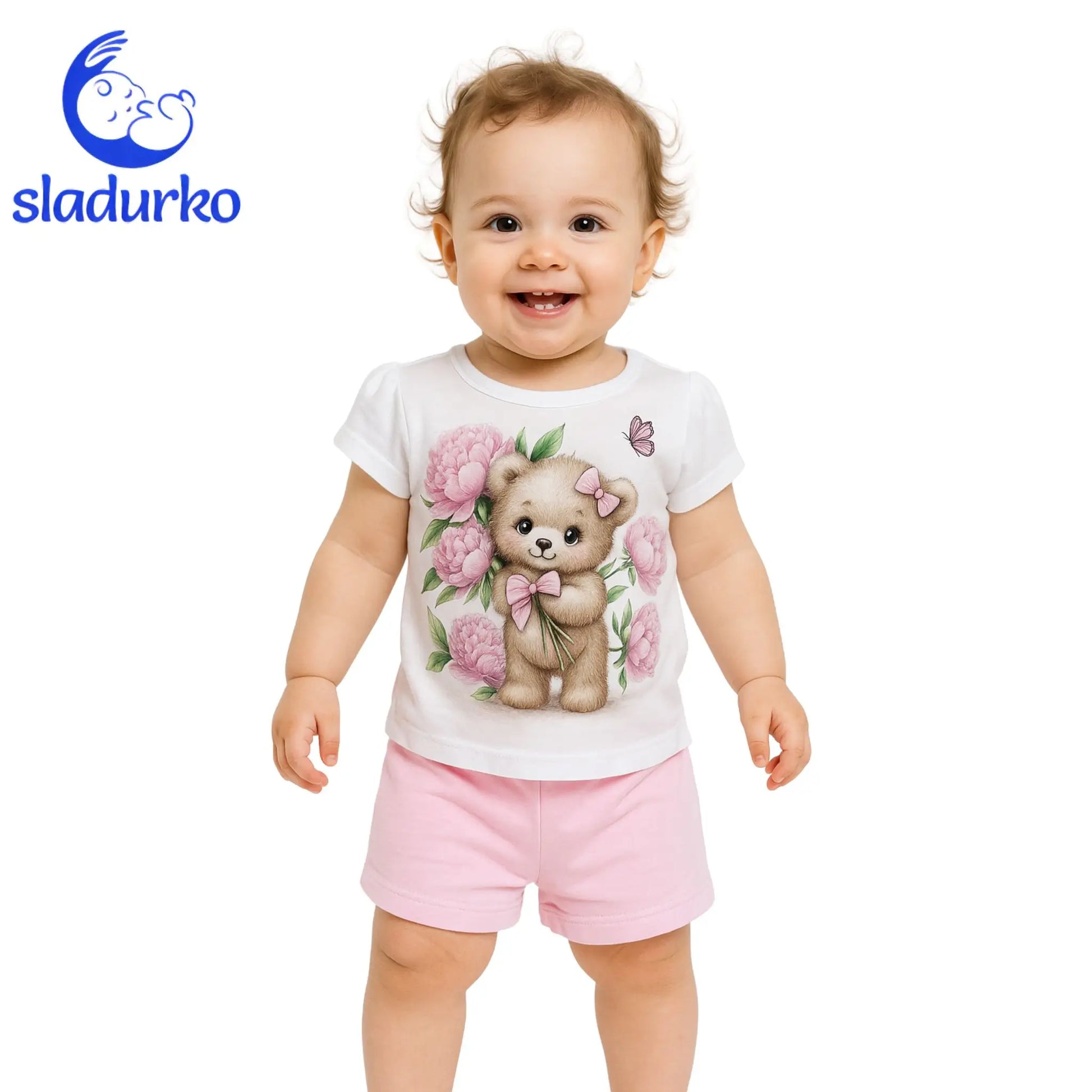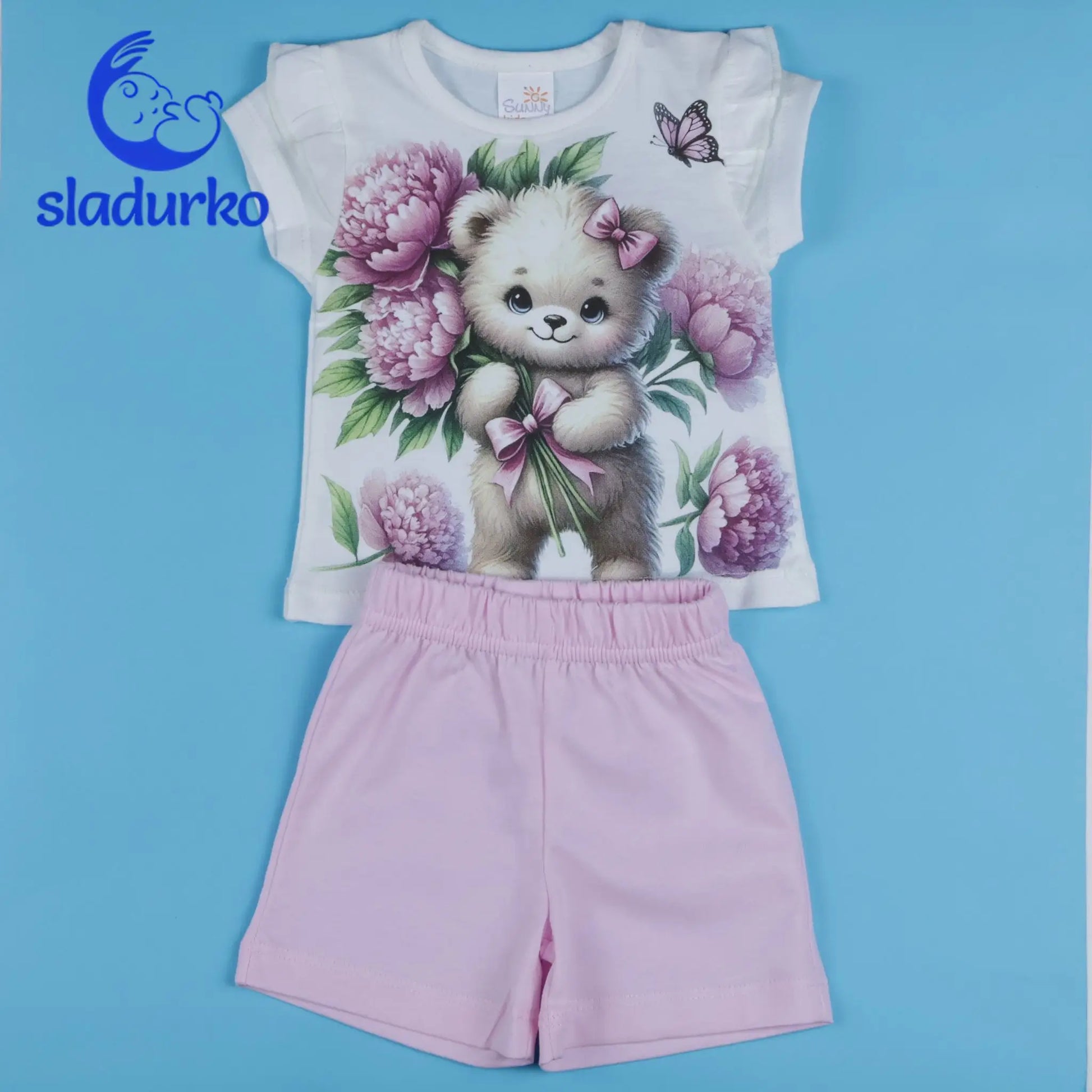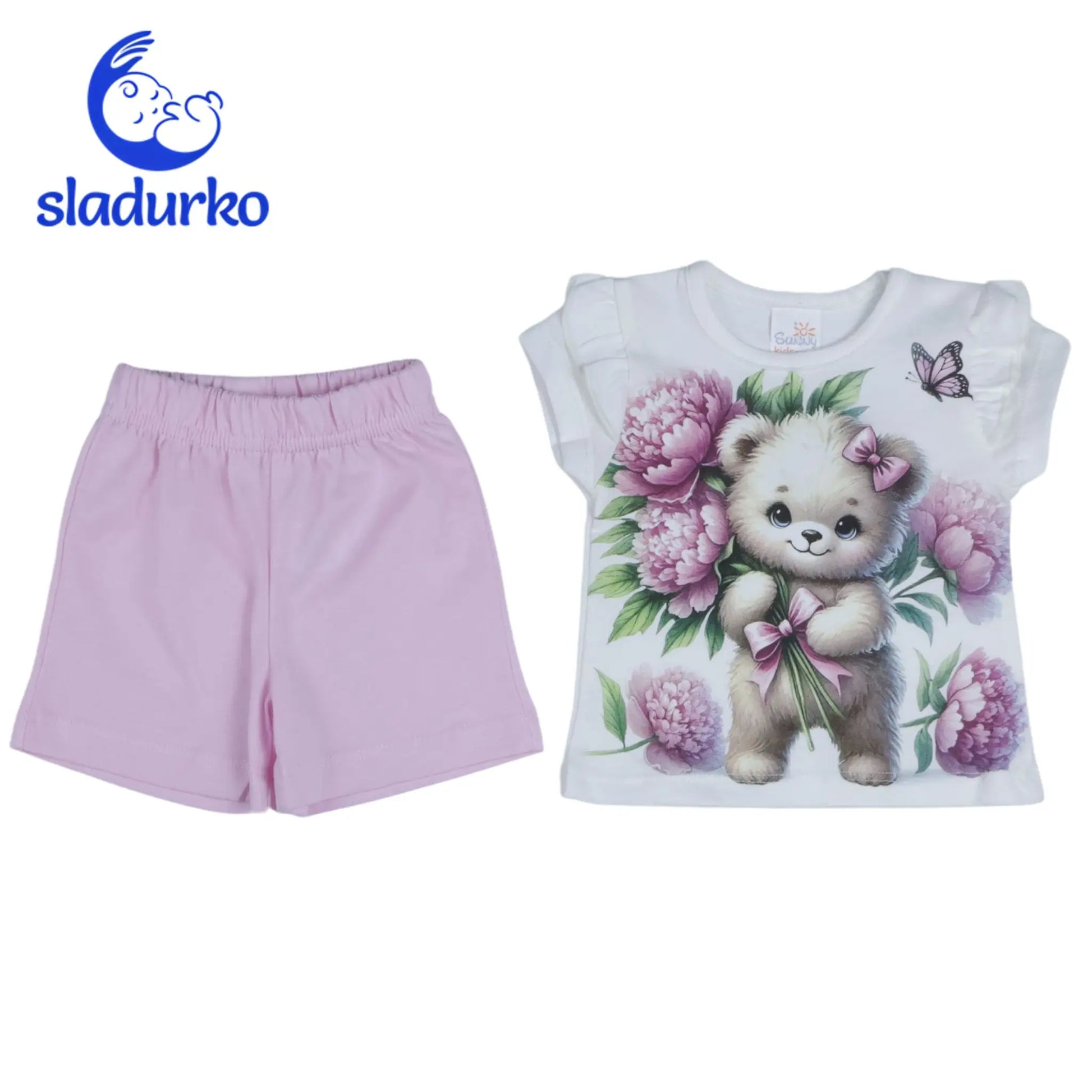 Детски летен комплект "Нежно мече" - тениска и къси панталонки