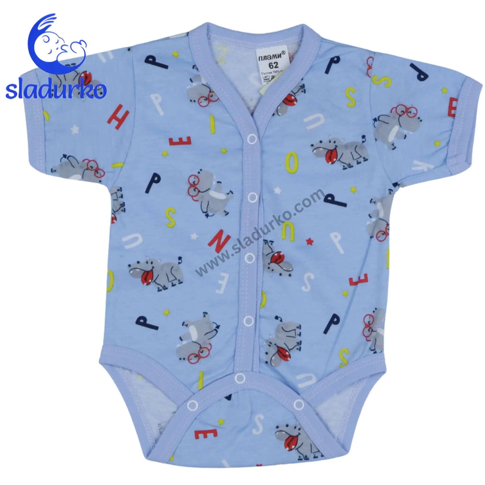 Удобно и практично бебешко боди с къс ръкав, изработено от 100 % фин памук, което гали нежната бебешка кожа цял ден. Веселият принт с усмихнати хипопотами в очила и разноцветни букви придава игрив акцент и прави обличането още по-приятно.