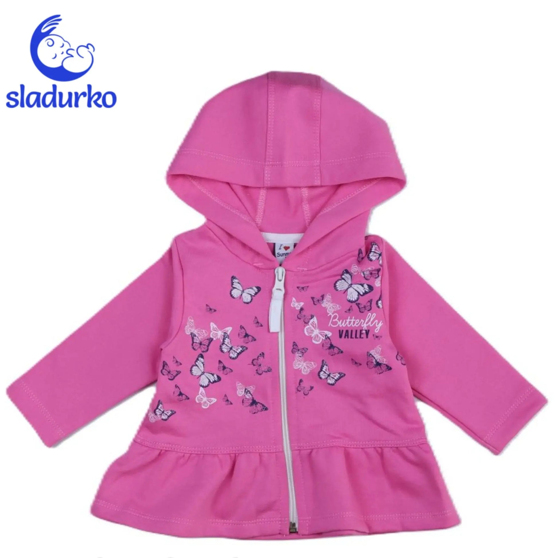 Размери от 68 до 80. Суитчер с качулка и цип, леко ватиран. Модерна и свежа визия за вашето момиченце. Удобно , лесно и практично закопчаване с цип. 100% памук. Произведено в България.