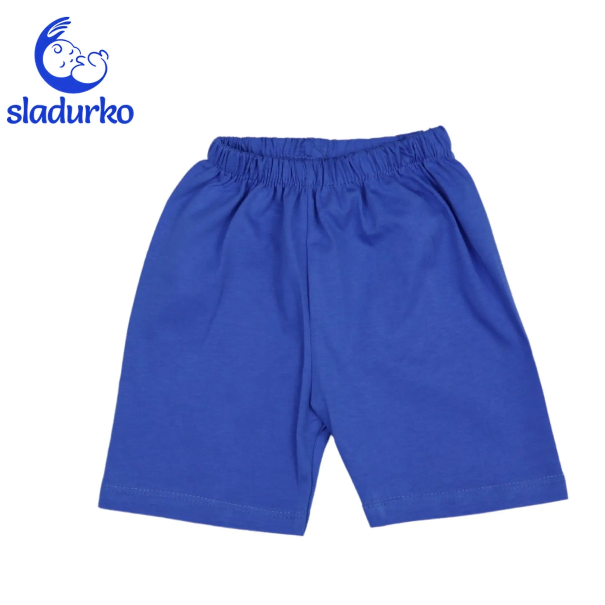 - Цвят: Тениска в бежово, къси панталонки в наситен кралскосин цвят.