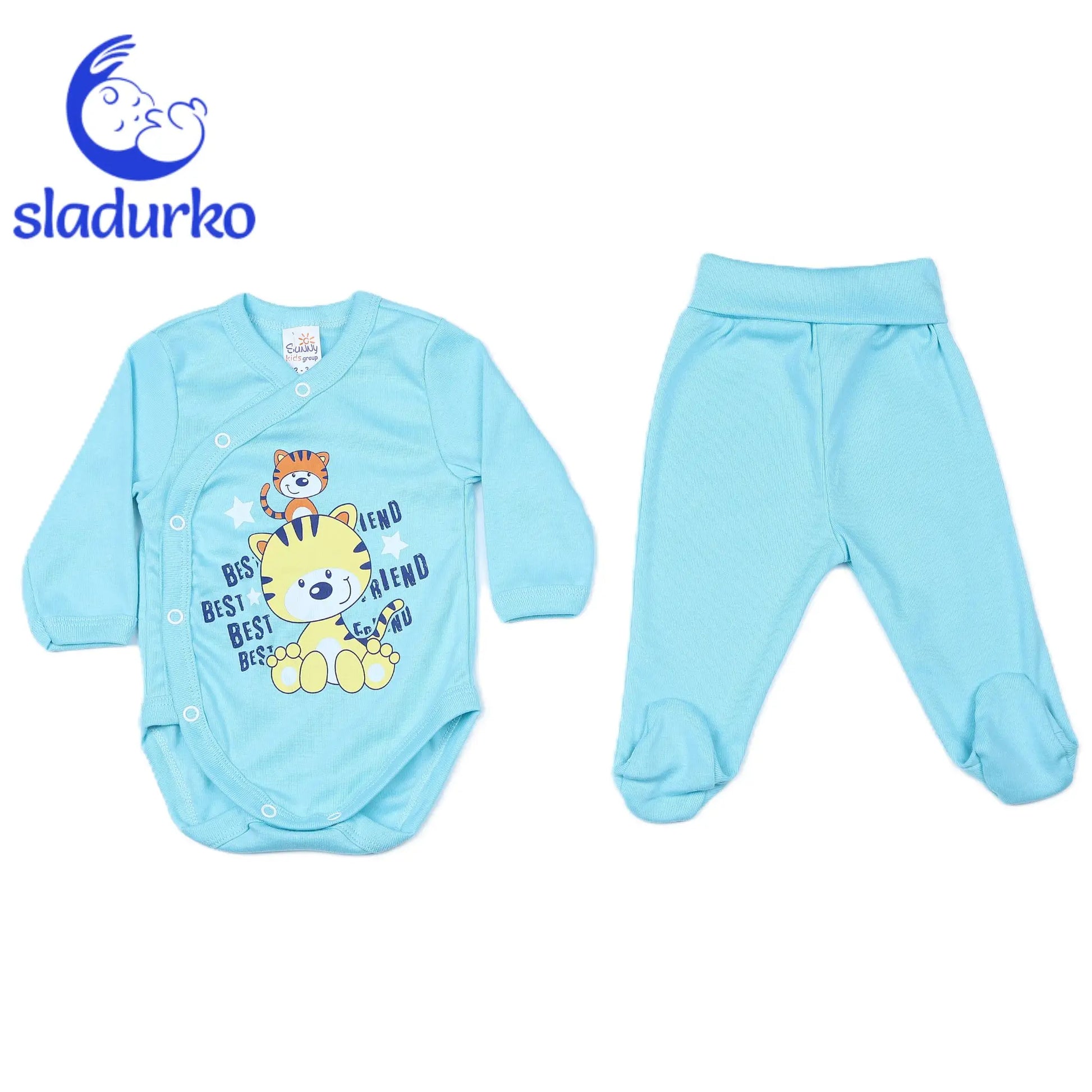 Удобен комплект от две части за момче боди със странично закопчаване и ританки