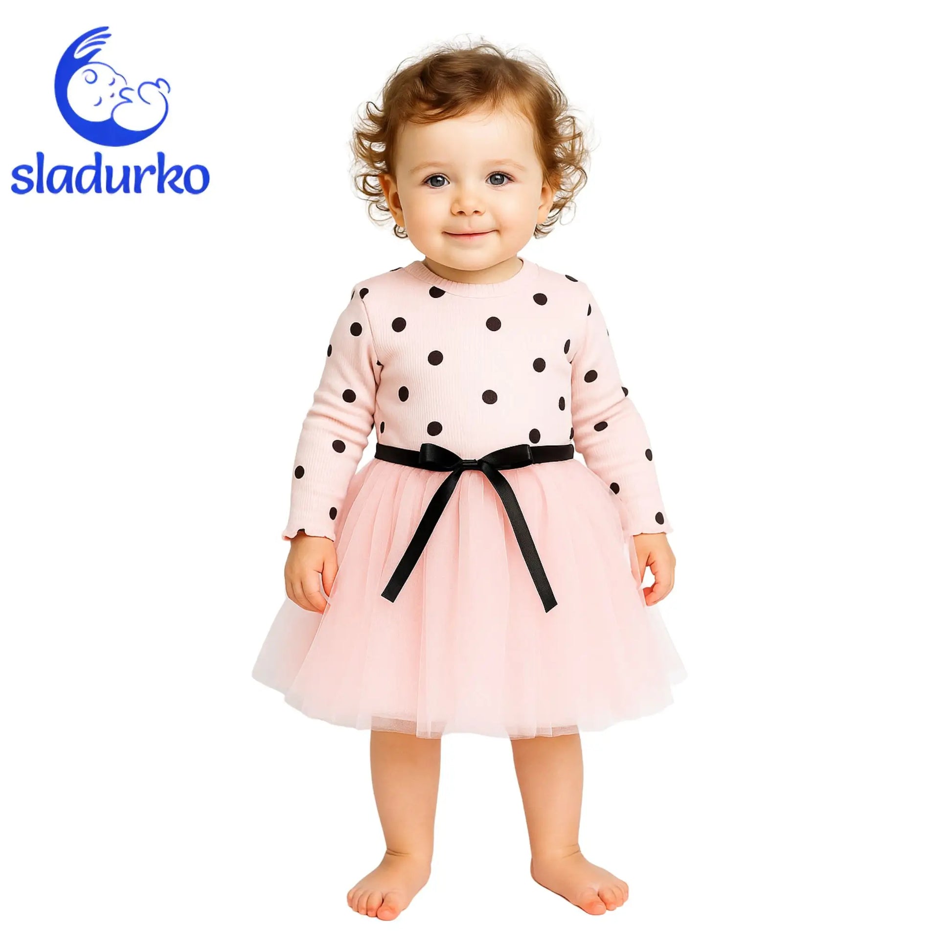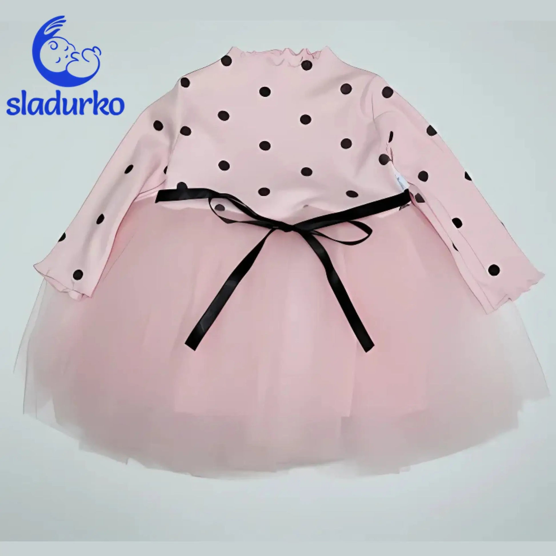 Горната част на рокличката е декорирана с класически точки, които придават игрив и стилен вид. Контрастът между точките и елегантната тюлена долна част създава уникален и модерен дизайн, подходящ за всяко малко момиченце.