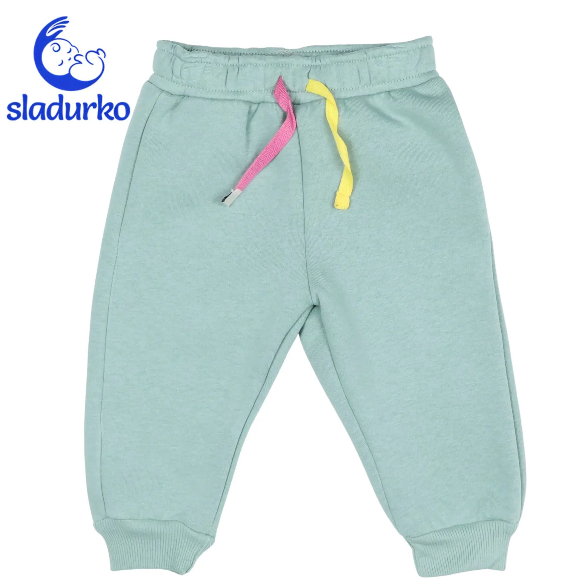 Панталонът в светломентово е с практична ластична талия и декоративни връзки , които добавят забавен и модерен акцент. Завършен с удобни маншети, комплектът е подходящ за активни игри и разходки в по-хладните дни.