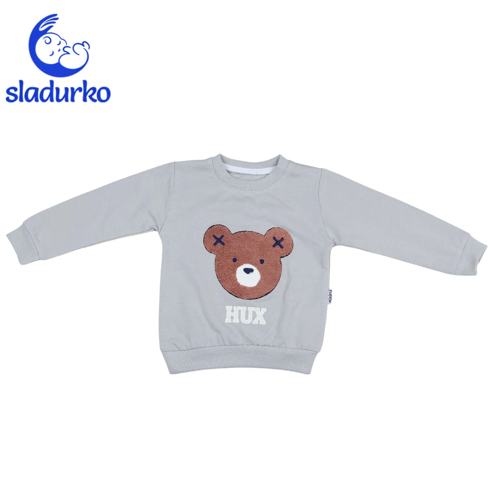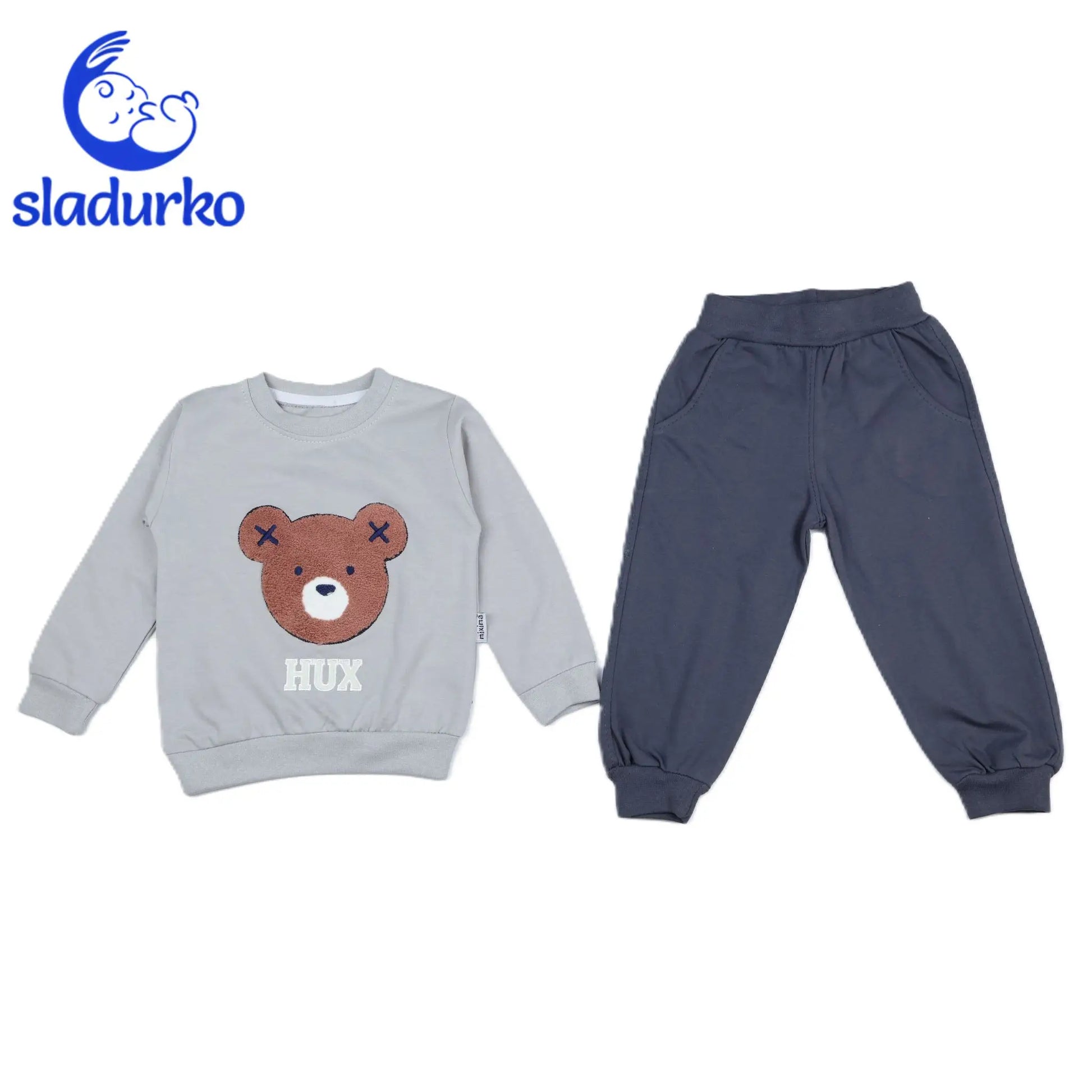 Комплект от светлосива блузка и сиви панталонки с мече за момче