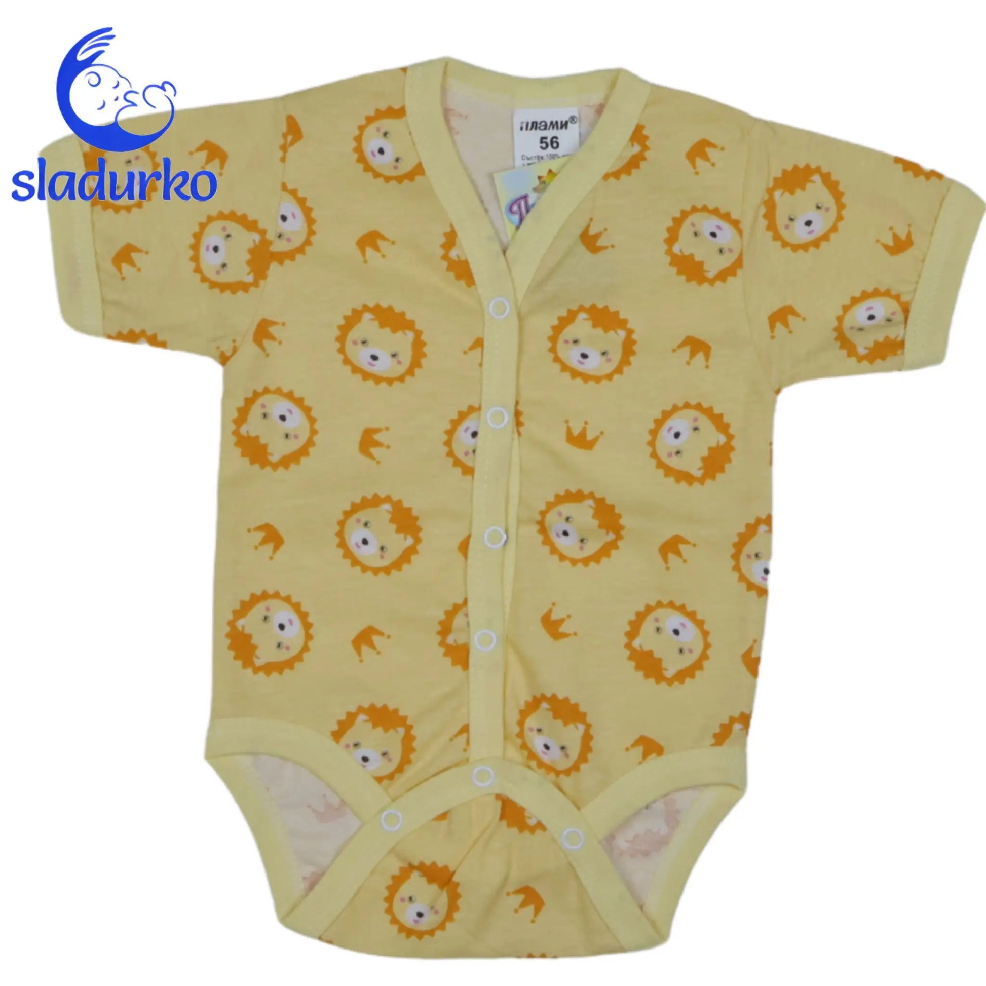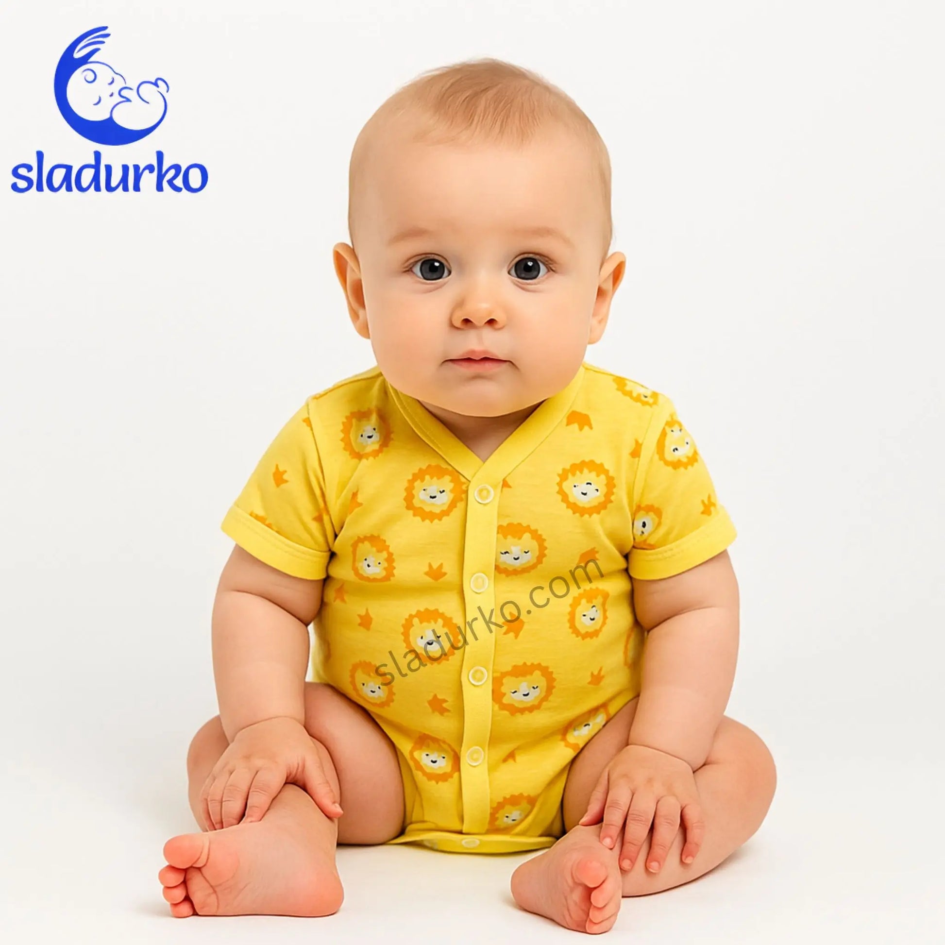 Бебешко боди с къс ръкав и предно закопчаване - жълто