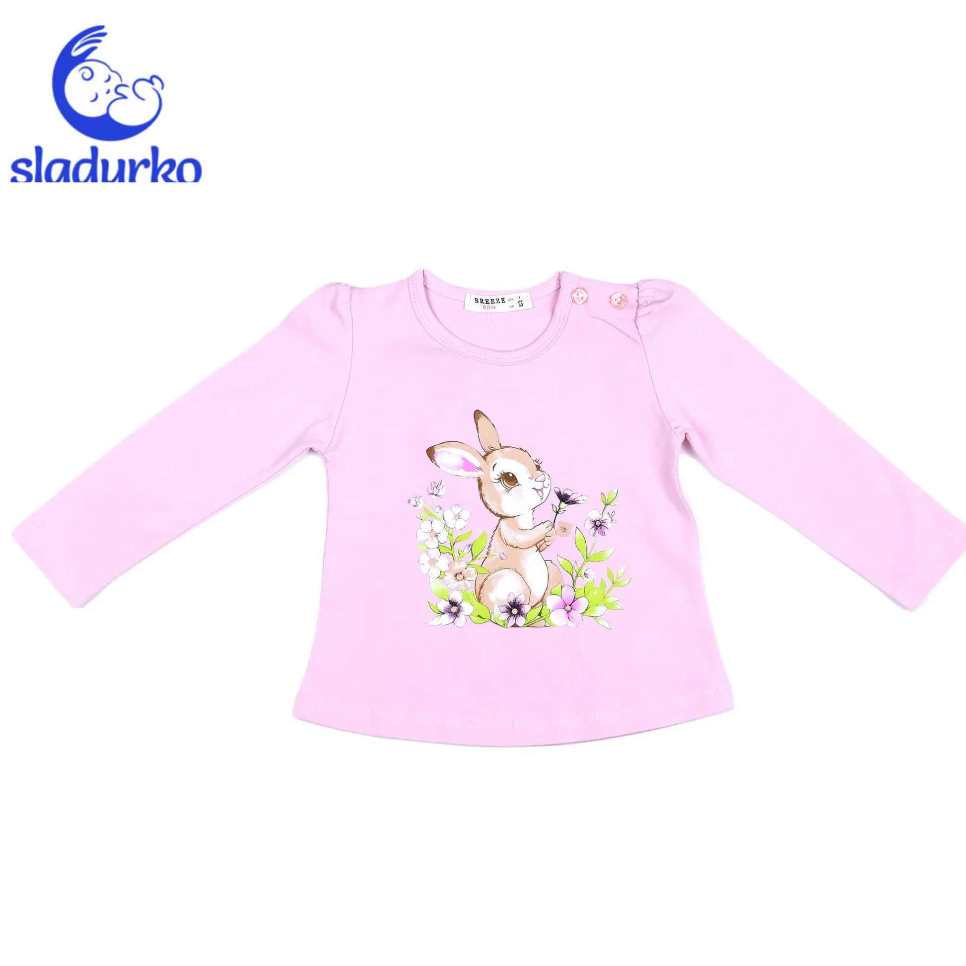 Блузка с дълъг ръкав цвят розов с принт зайче
