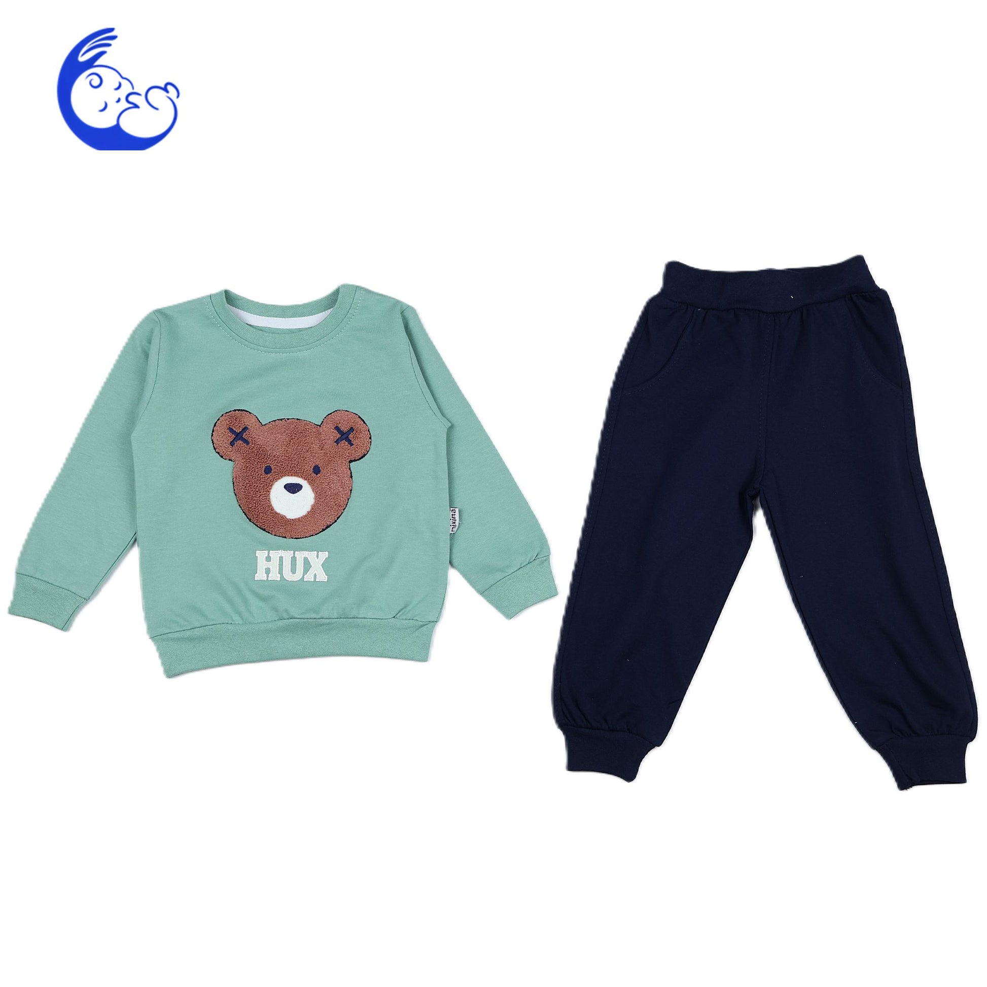 Комплект от светлозелена блузка и тъмно сини панталонки с мече за момче